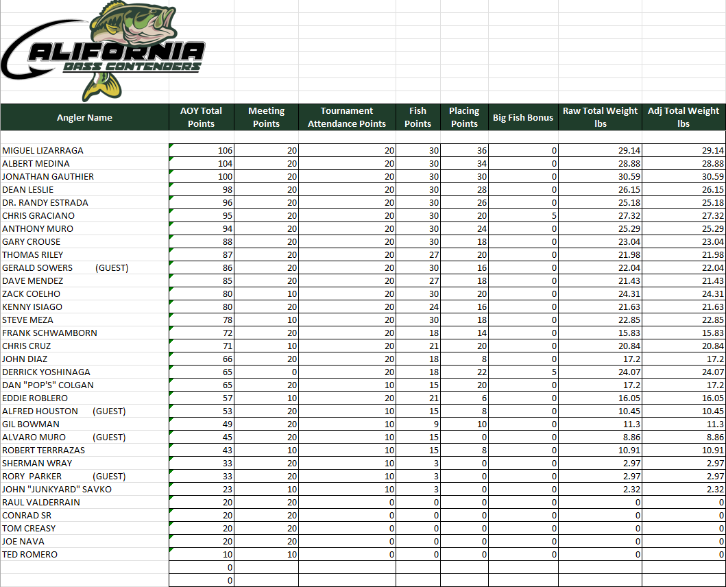 With Graciano and Lizarraga teaming up at Havasu, the question becomes: can both make another strong push to hold Miguelito at the top of the leaderboard and break Compa Chris into the top 5? Or will Team Medina/Houston have good days and open the door for the champ to reclaim control? OH Ivie won’t be sent to his room as he is not fishing Havasu, so he may slip down the leader board.